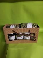 Das Täschen hat in der Breite Platz für drei Gläser à 200 Gramm. In der Höhe hat es noch Platz für Tee oder Kräuter.